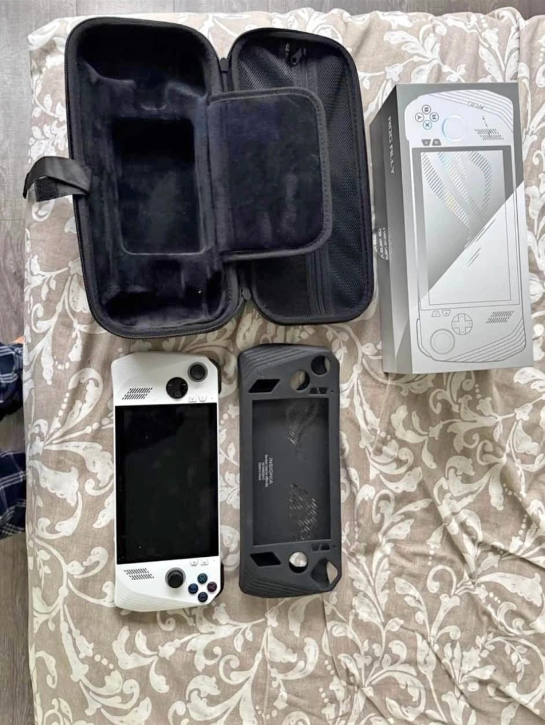 Selling an ASUS ROG Ally handheld gaming console. It comes with a case, a protective cover, and the original box. Great for gaming on the go!