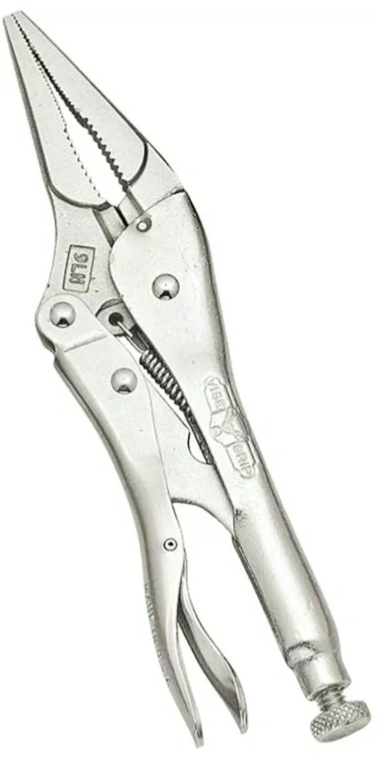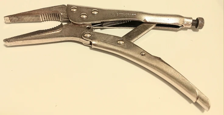 I'm selling these used Mastercraft Vise-Grip long nose pliers, measuring 9 inches, perfect for detailed work requiring a firm grip. These pliers are in great condition, ready for your next project.