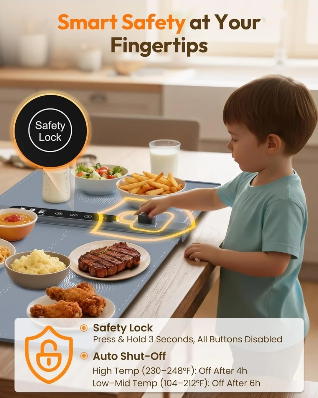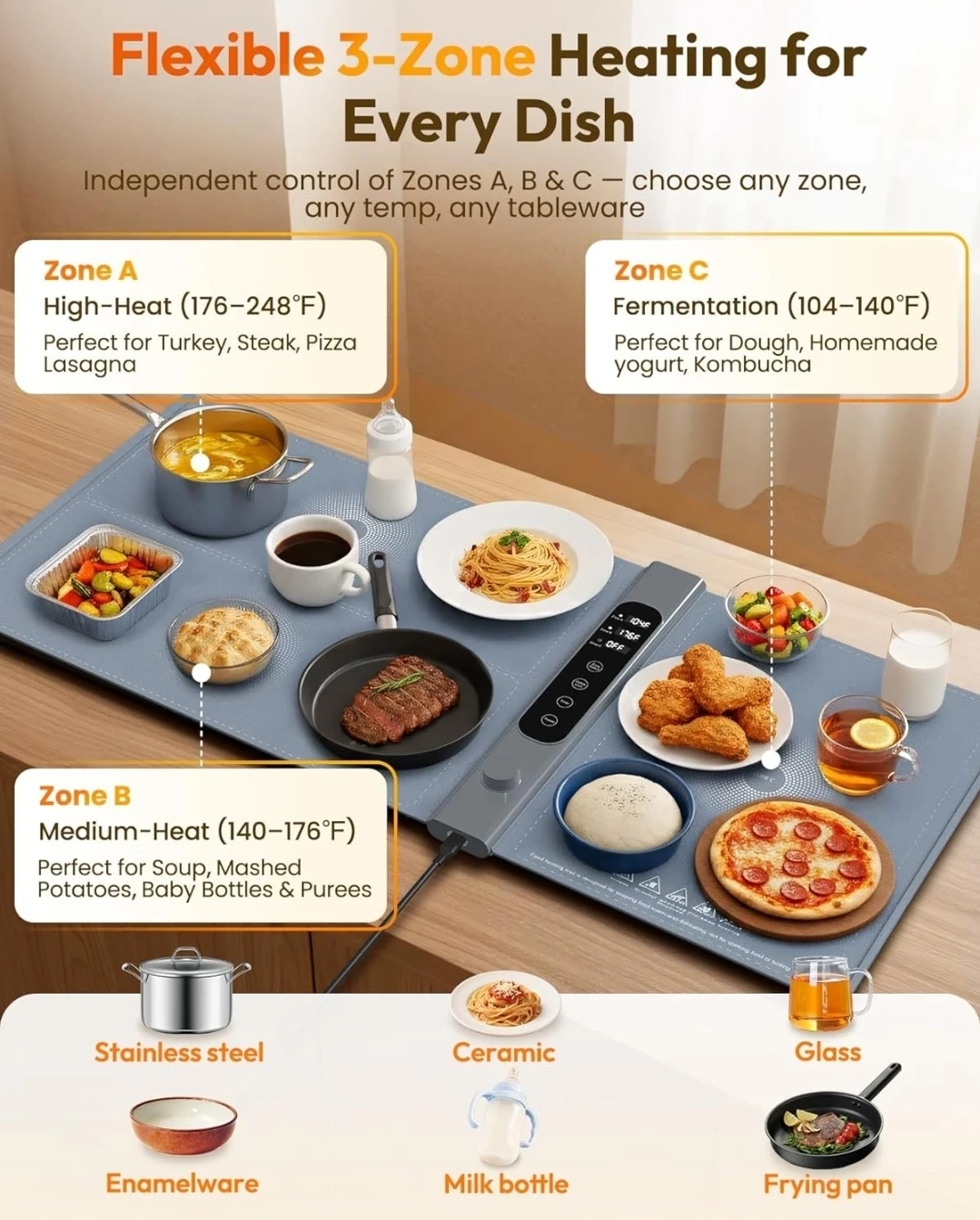 Keep your dishes warm with this Yeeke 3-Zone Independent Warming Mat! It's perfect for parties or buffets.