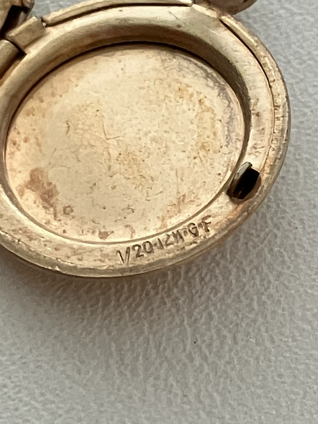 Selling a 12k gold fill locket necklace with a floral design. It opens up so you can put a picture inside! The locket is round and comes with a 12k gold fill chain 18”.