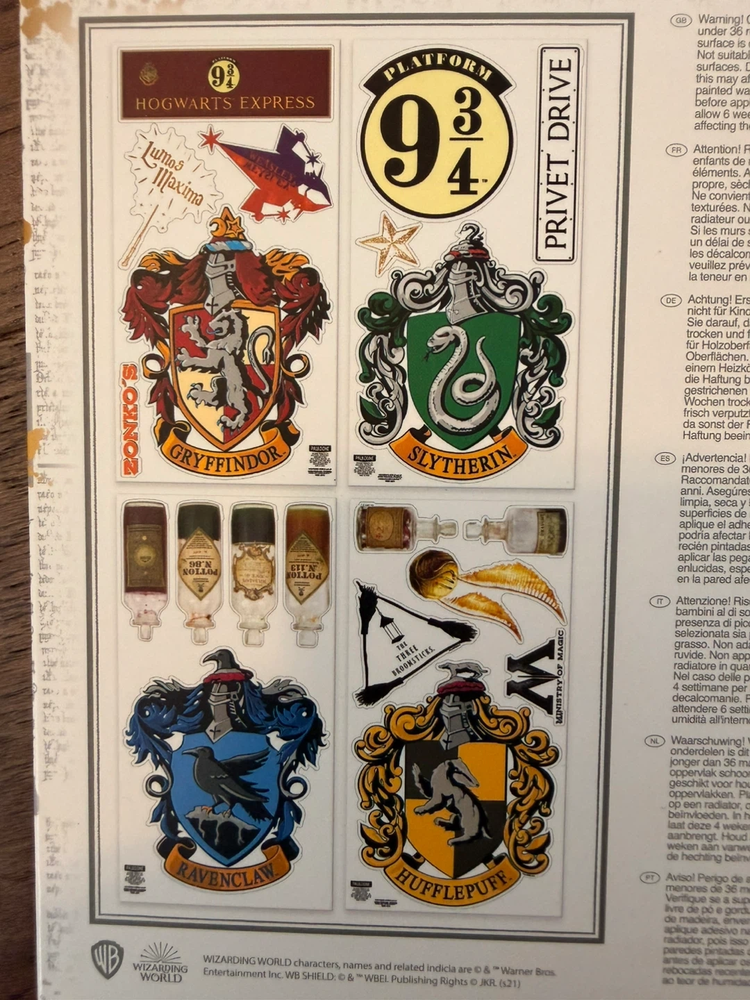 Selling a brand new set of Harry Potter wall decals, still in the original packaging! Includes 4 decal sheets, each 23cm x 44cm (9 x 17 inch). Contains 20 waterproof and removable decals featuring iconic Hogwarts imagery.