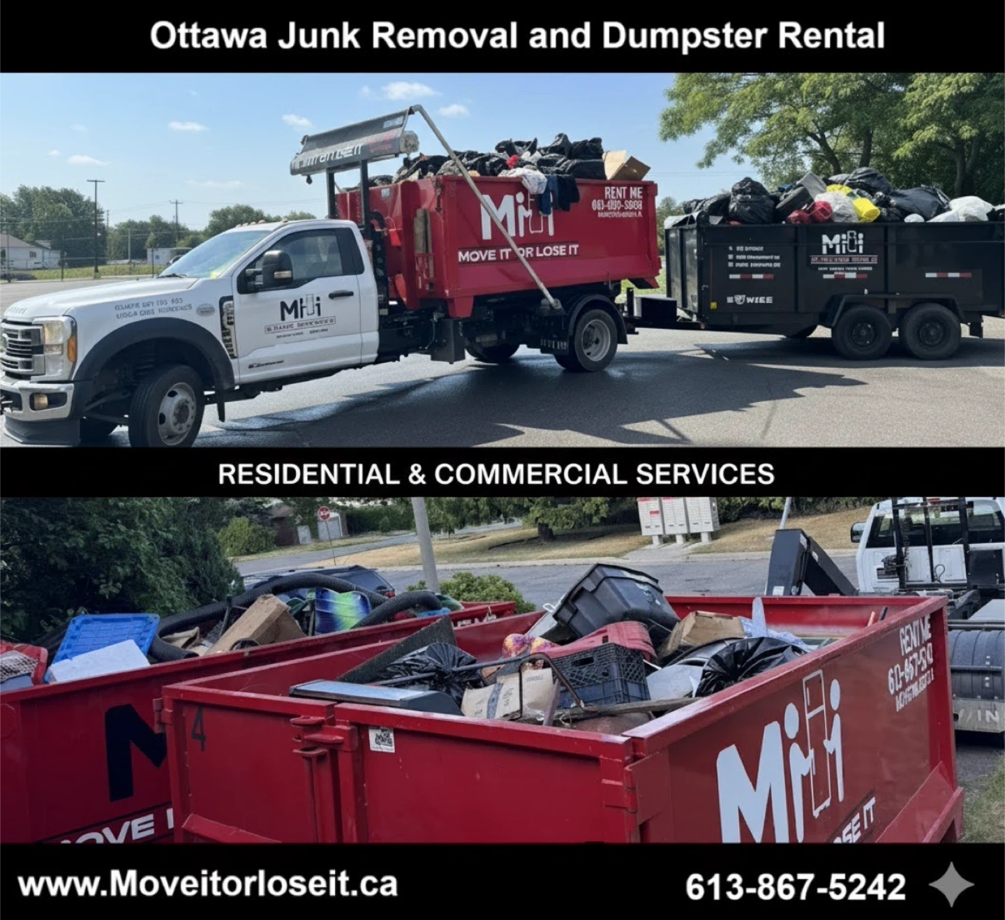 Junk removal and dumpster rentals available. Reply to this ad or text 613-867-5242 for a quick free quote.