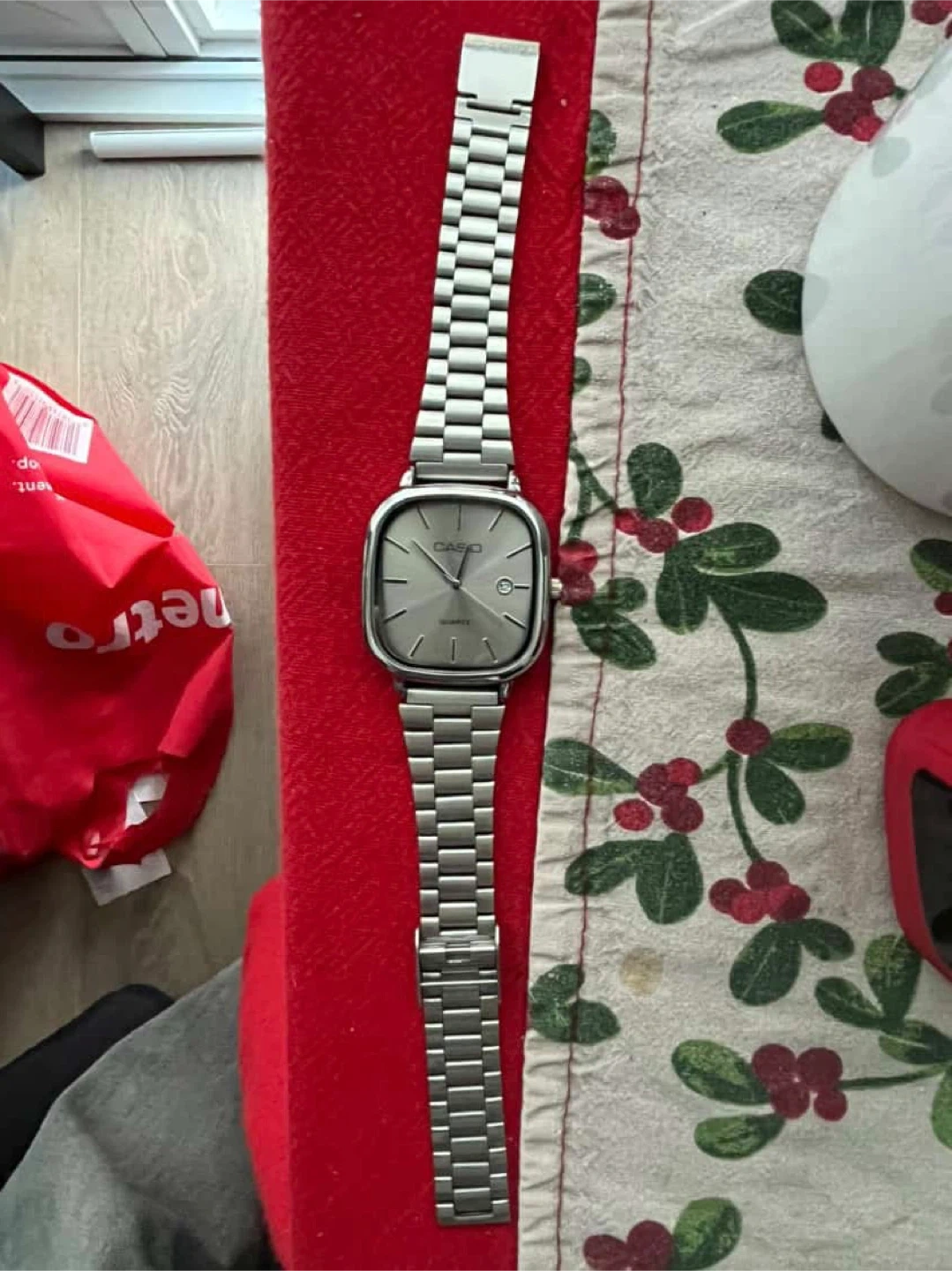 Selling a Casio A168 watch with a stainless steel band. It's in great condition and ready for a new wrist! The back of the watch indicates it's water resistant and made in Japan. Worn only twice out has no problems selling since im a student.