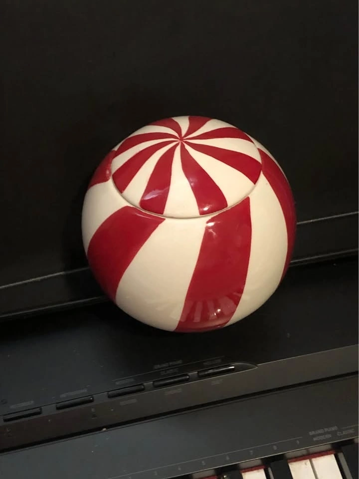 Red and white striped ceramic candle with lid. It looks like a peppermint, so it’s perfect for the holidays! I bought it as a gift and decided to give something else, so it needs a new home. Newton, NE. Can meet some locations. Cash only please.