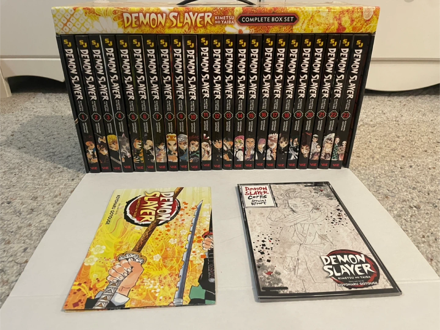 Selling a complete box set of the Demon Slayer manga series! This set includes full volumes, including special report book and double sided poster. The box is also included!