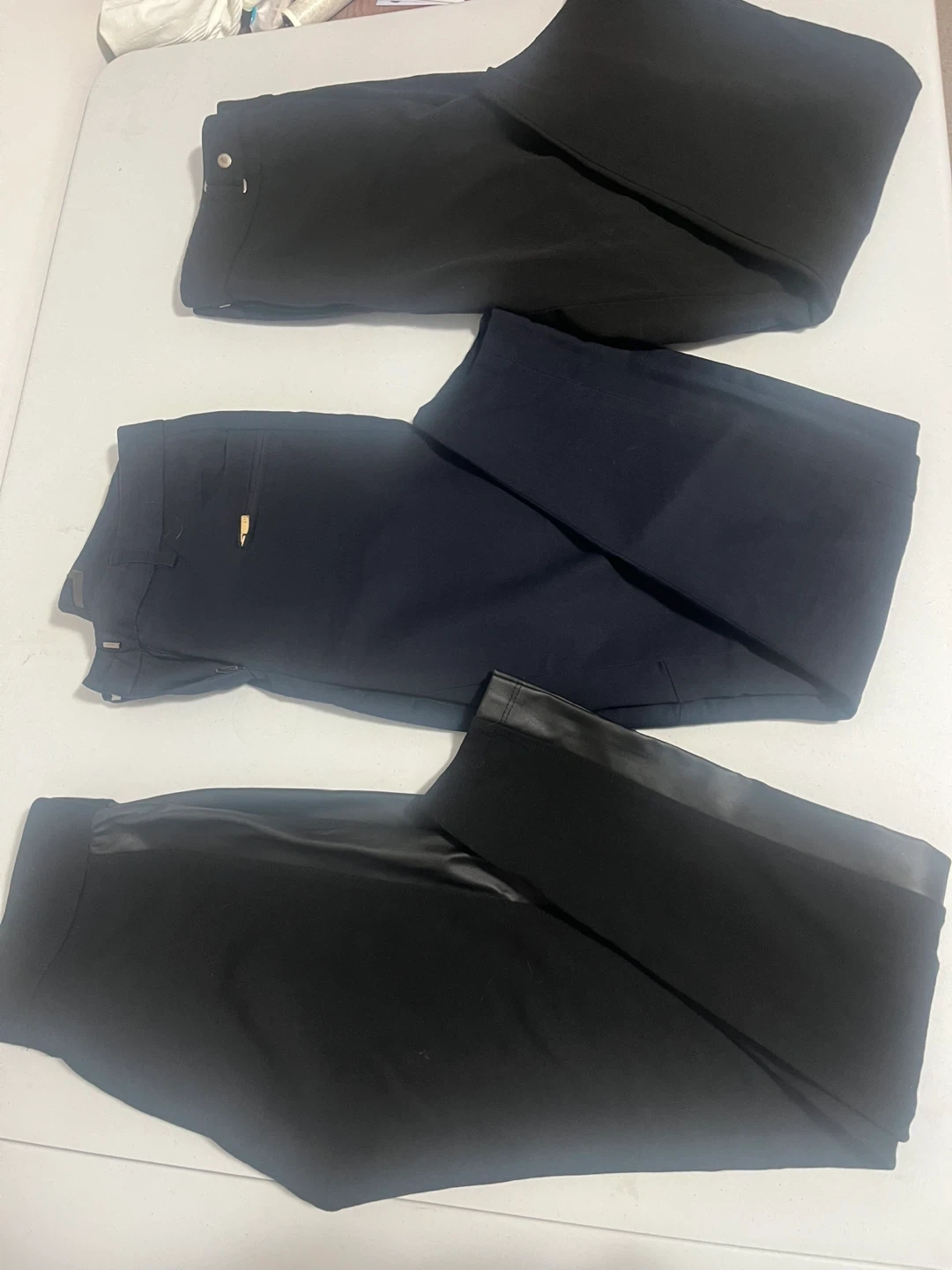 Selling a bundle of ladies' pants in black and navy colours. They're in good condition and ready for a new wardrobe!