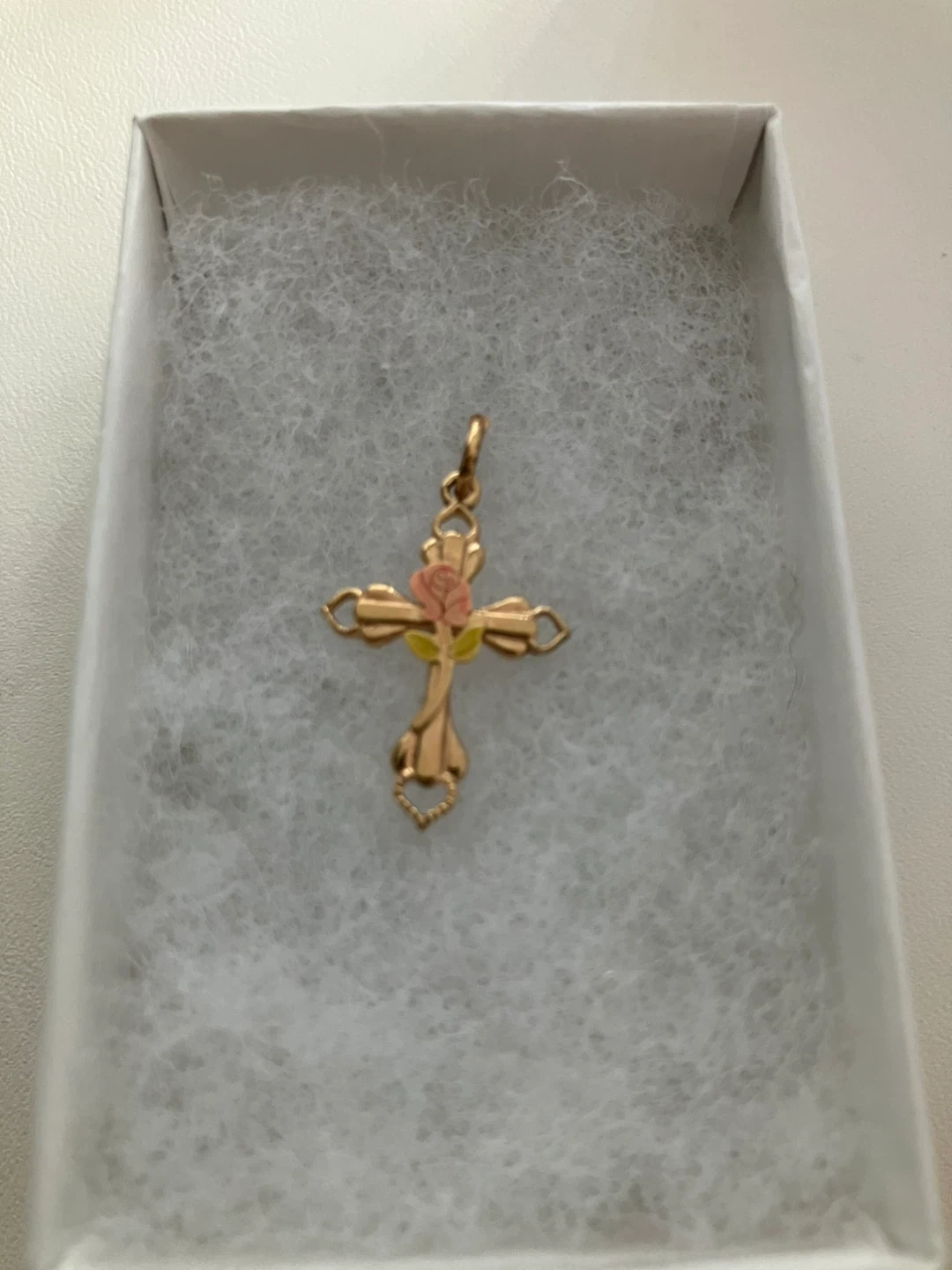 Selling a lovely 10k gold fill vintage cross pendant featuring a delicate rose design. It's in great condition and comes in a box for safekeeping. Perfect for adding a touch of elegance to any outfit!