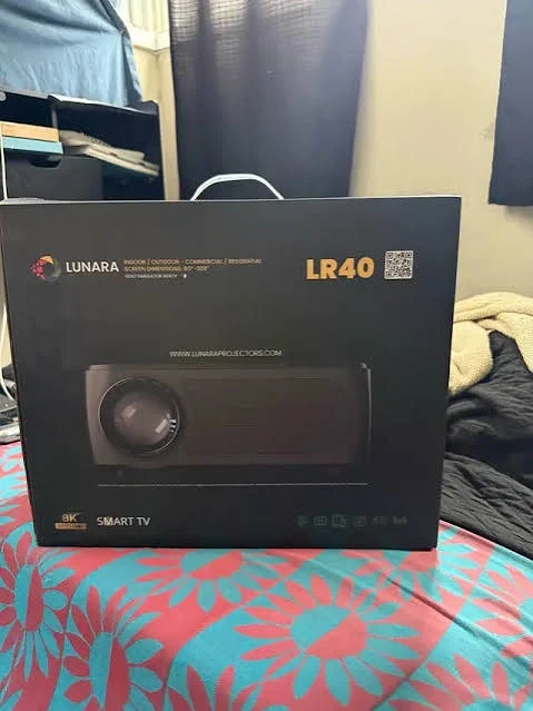 projector, Titan remote control, digital motorized screen, ceiling mount, and gold-plated HDMI cable. Is a Smart TV/wifi. It displays up to 300 inches on any colored wall and comes with wireless speakers. Includes a $100 Netflix gift card and year subscription to Rogers Xfinity Cable..