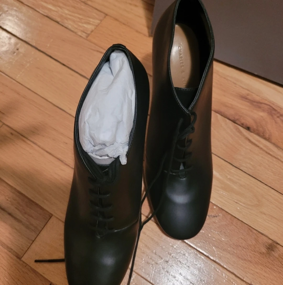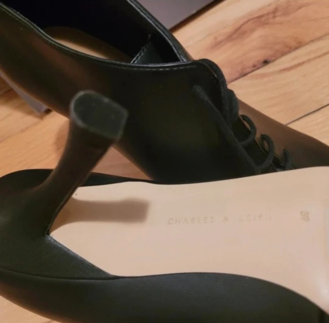 Selling a pair of Charles & Keith lace-up heeled booties in black. They are in great condition and come with the original box. Size 38.