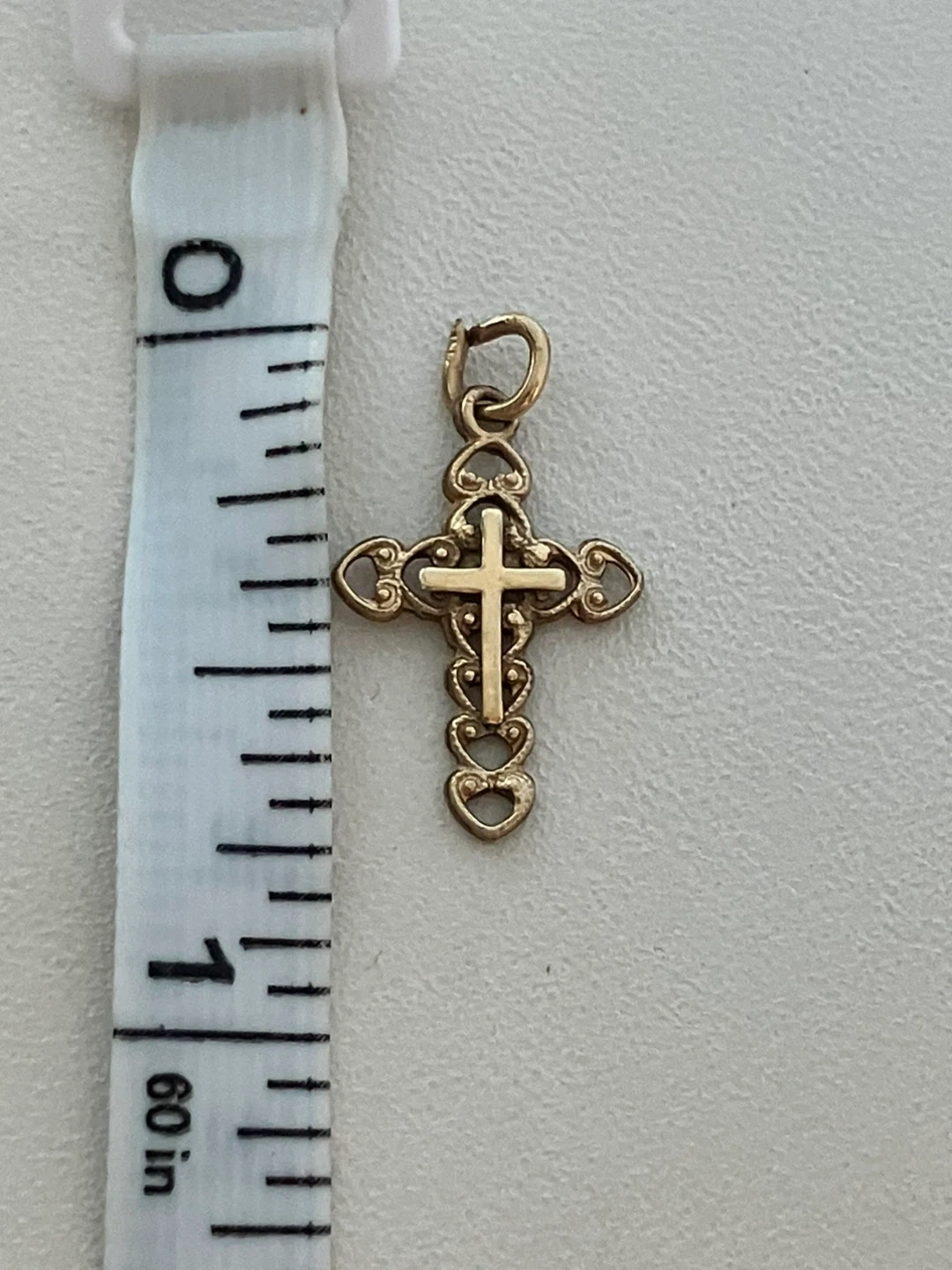 Selling a beautiful 1/20 14 k gold fill cross pendant. It's in excellent condition and comes in a box for safekeeping. The pendant measures approximately 1 inch in length. It's a lovely piece to add to your jewellery collection!