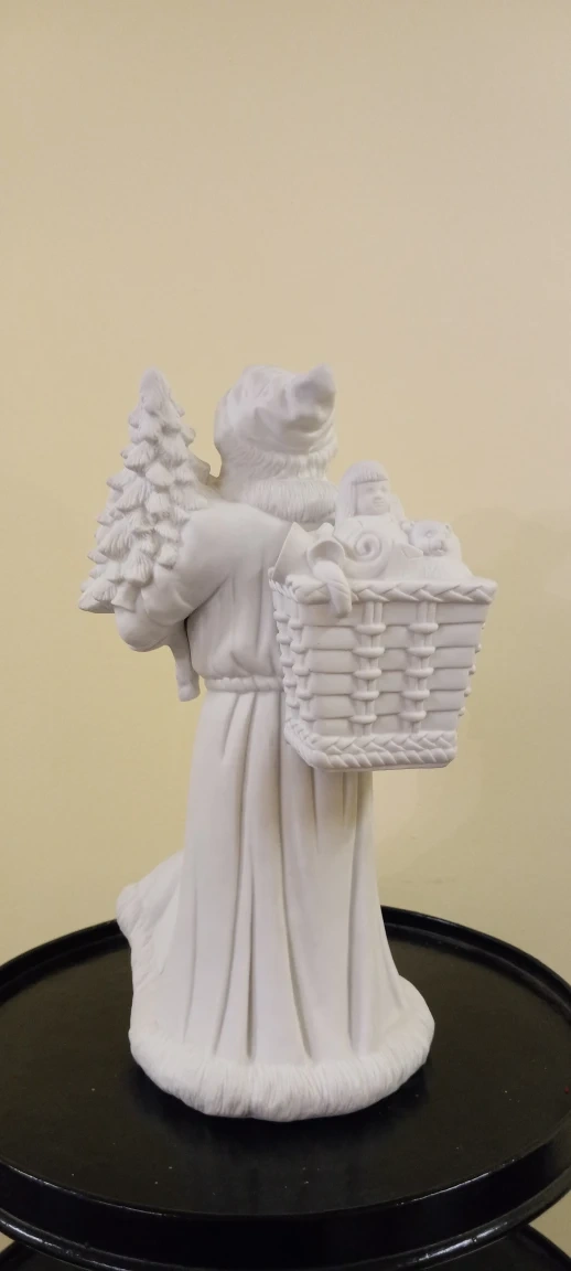 White matte finish ceramic Santa figure. Used for display no chips or cracks, approx size 7.5 by 14.5 inches.