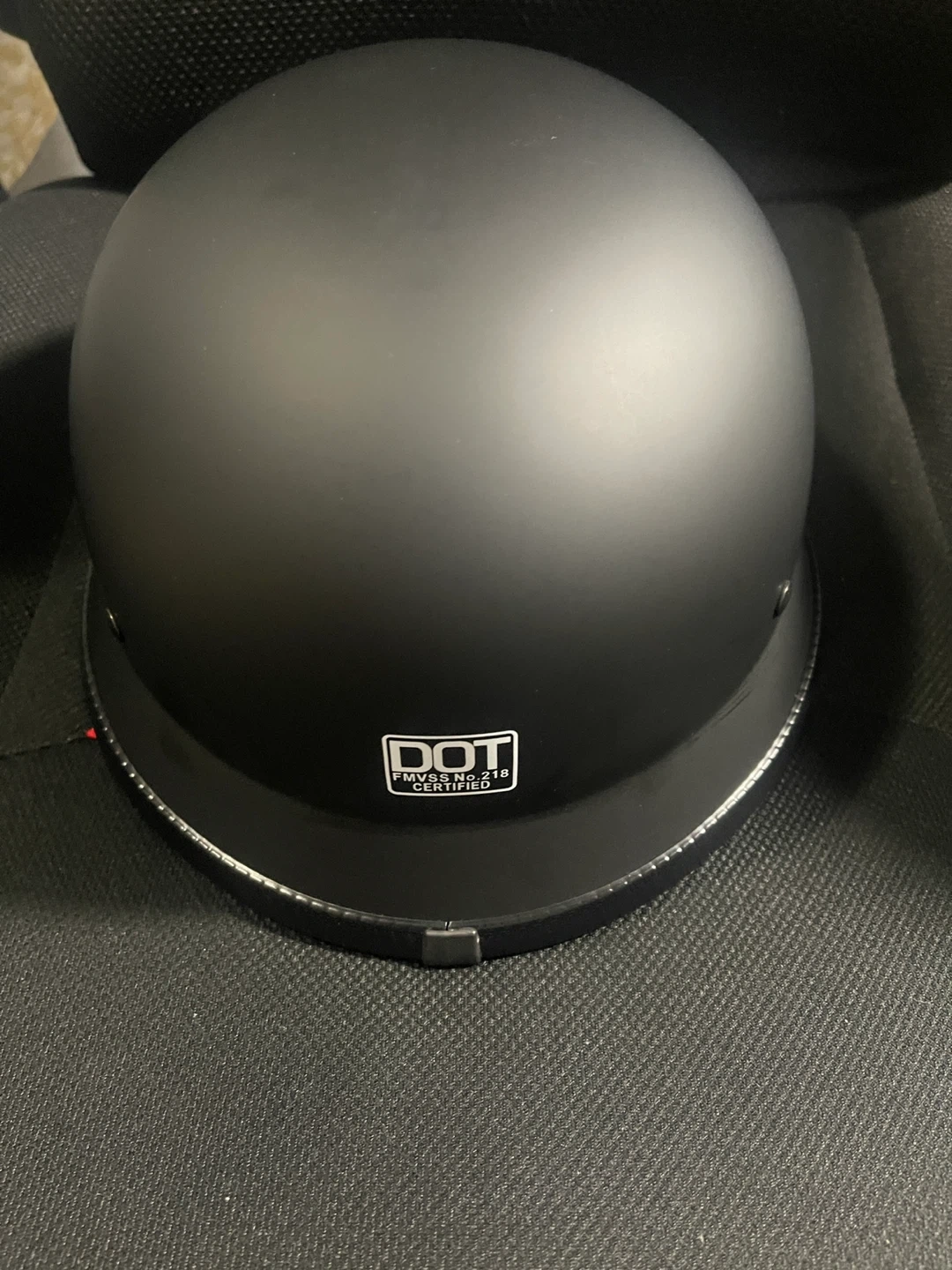 Selling a DOT certified motorcycle half helmet in matte black. It's in great condition and comes with the original box. Perfect for cruiser or cafe racer style bikes!