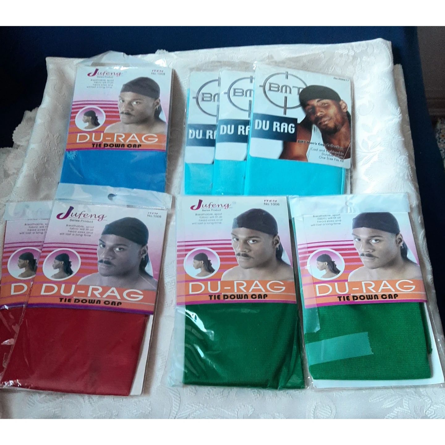 Selling 8 brand new Jufeng Du-Rag Tie Down Cap! It's perfect for keeping your hair in place and adding a stylish touch to your look