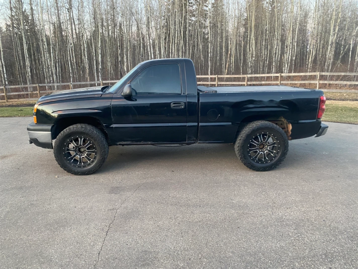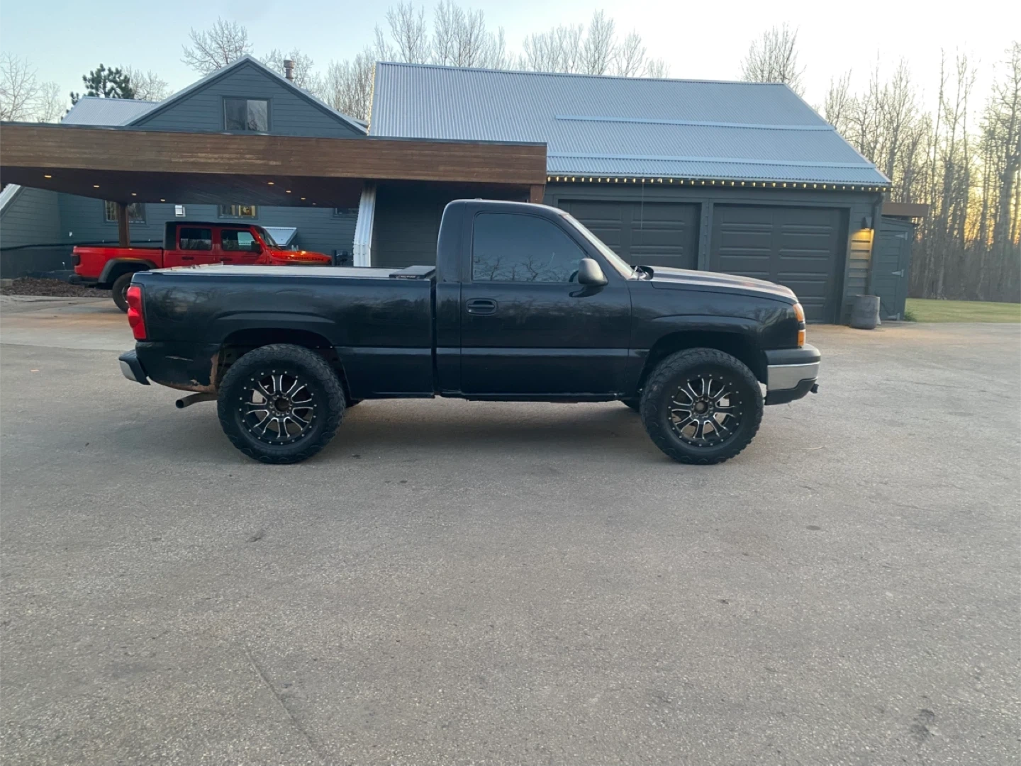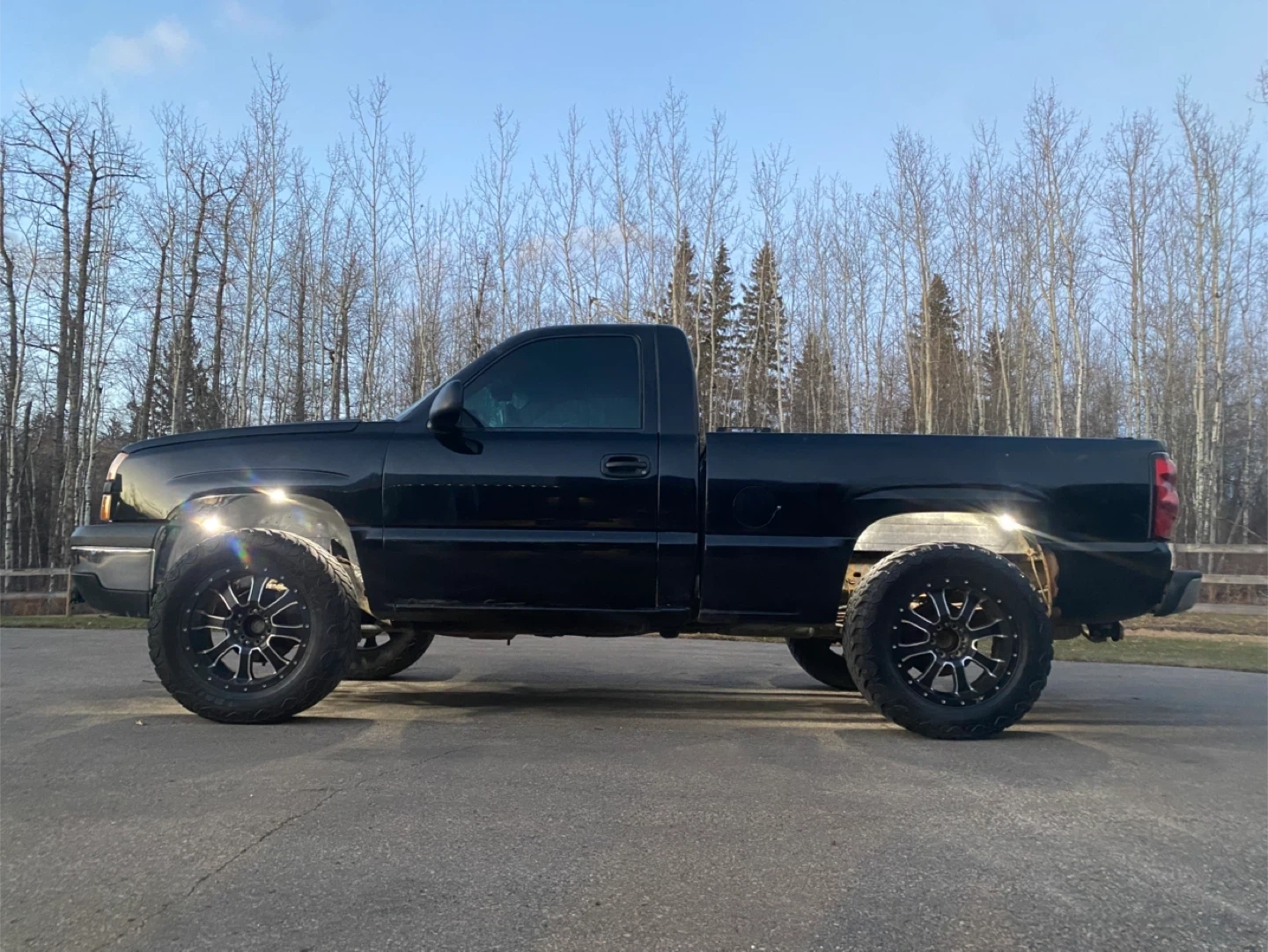 Hey, I’ve got a completely rust free 2007 Chevrolet Silverado 1500 with 232757 km on it. It’s a good looking truck with low kilometres and fresh oil changes. I cut out all the rust and welded in new panels so the body works not perfect. It’s got a centre console in it because I never needed to drive more than 2 people, interiors in great condition other than the typical rip in the drivers seat. It’s also got an after market radio and a Bluetooth 12 volt plug in to Bluetooth to the radio. Ac blows cold, heater blows hot. It’s sitting on 20x9 race lines with +12 offset wrapped in 20x12.5x35. Windows wrapped in 5% except for the windshield, could use a new windshield. It’s got 12 rock lights, two nilight fog lights and aftermarket let bar headlights. I got it with a roll-n-lock tonneau cover in good condition, slides smooth and locks good. It’s got a spray in bed liner as well. It’s got a quiet exhaust tick but other than that it’s mechanically strong as well, runs as it should and needs nothing, it’s ready to daily. It’s got no leaks and has fresh transmission and motor oil changes.
