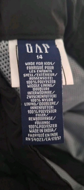 A pair of GAP kids snow pants in size 14. They're black and made with 100% polyester shell and filler, and 100% nylon lining. Perfect for keeping your little one warm and dry during winter activities!