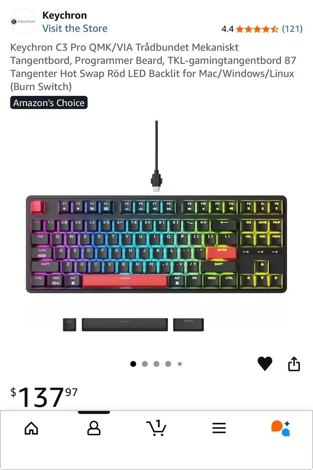 Keychron C3 Pro QMK/VIA Trådbundet Mekaniskt Tangentbord, Programmer Beard, TKL-gamingtangentbord 87 Tangenter Hot Swap Röd LED Backlit for Mac/Windows/Linux (Burn Switch)