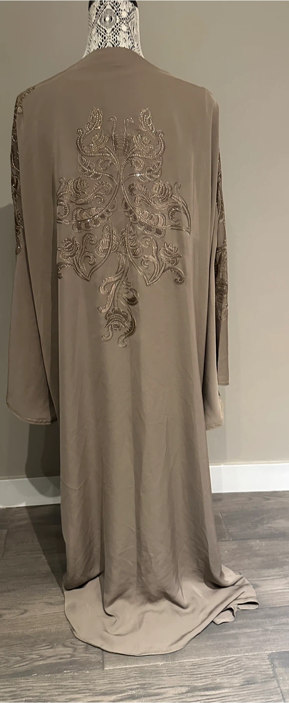 Beautiful abaya with intricate embroidery detailing on the sleeves and back. Perfect for special occasions or everyday wear!
