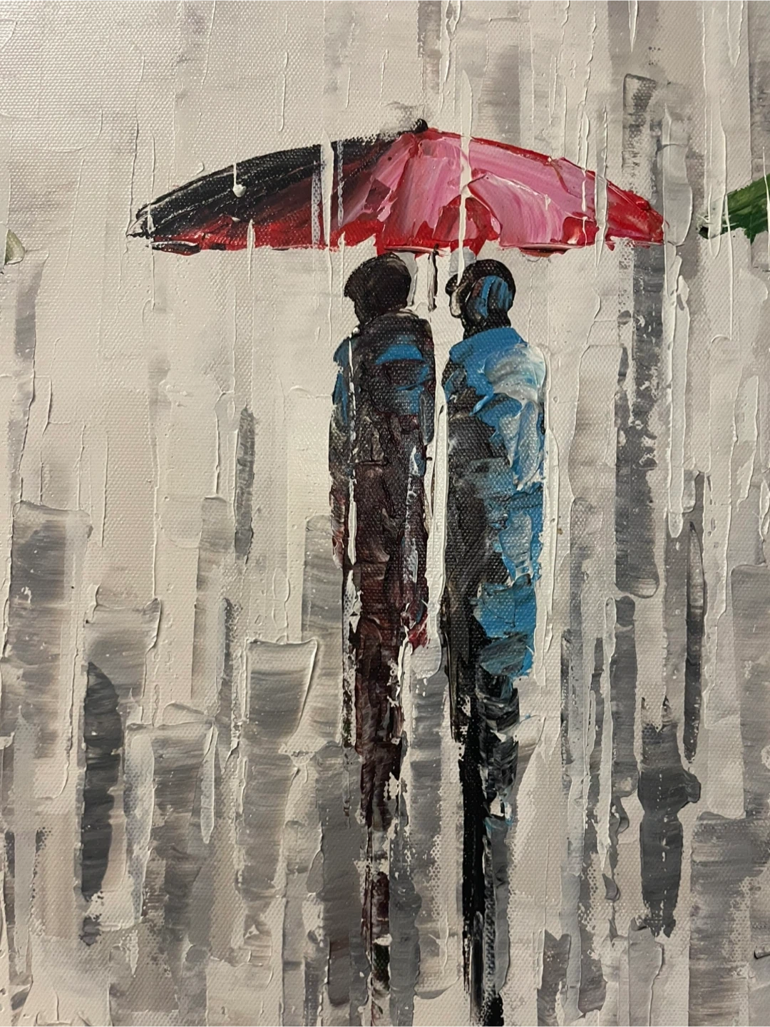 Reproduction of an original oil painting by Polish artist Ewa Czarniecka, often titled "Out In The Rain" or "City In Colour". The art style is contemporary impressionism, known for its vibrant colors and textured finishes. In excellent condition. Offers welcome!