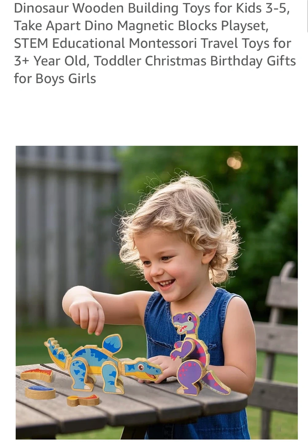 This is a fun magnetic dinosaur building block set for ages 3+. It comes with a drawstring bag for easy storage and transport. The assembled dinosaur measures approximately 5.9 inches long and 3.4 inches tall. It's a great educational toy for kids! Pick up Bramalea and Mayfield, cash only please.