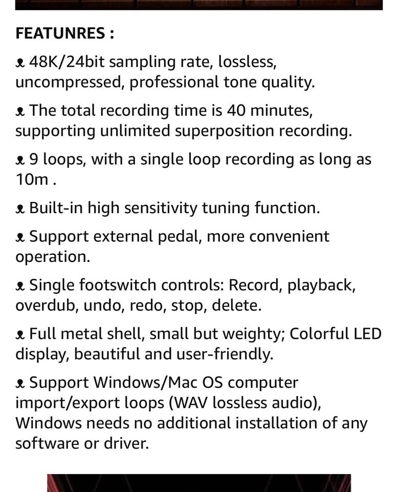 Great little looper for your guitar, keyboard, drums, whatever. Built in tuner. Barely used. Comes with the usb and manual it came with. You don’t need 9v adapter. Can power it through the usb.