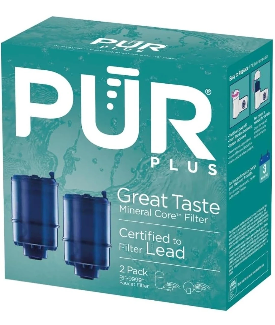I'm selling a 2-pack of PUR MineralClear faucet refills (model RF-9999). These filters provide superior filtration with activated carbon, ion exchange material, and natural minerals, transforming tap water into cleaner, great-tasting water. They are compatible with all PUR faucet filtration systems and certified to reduce 10x more chemical & physical substances than Brita’s leading pitcher filter