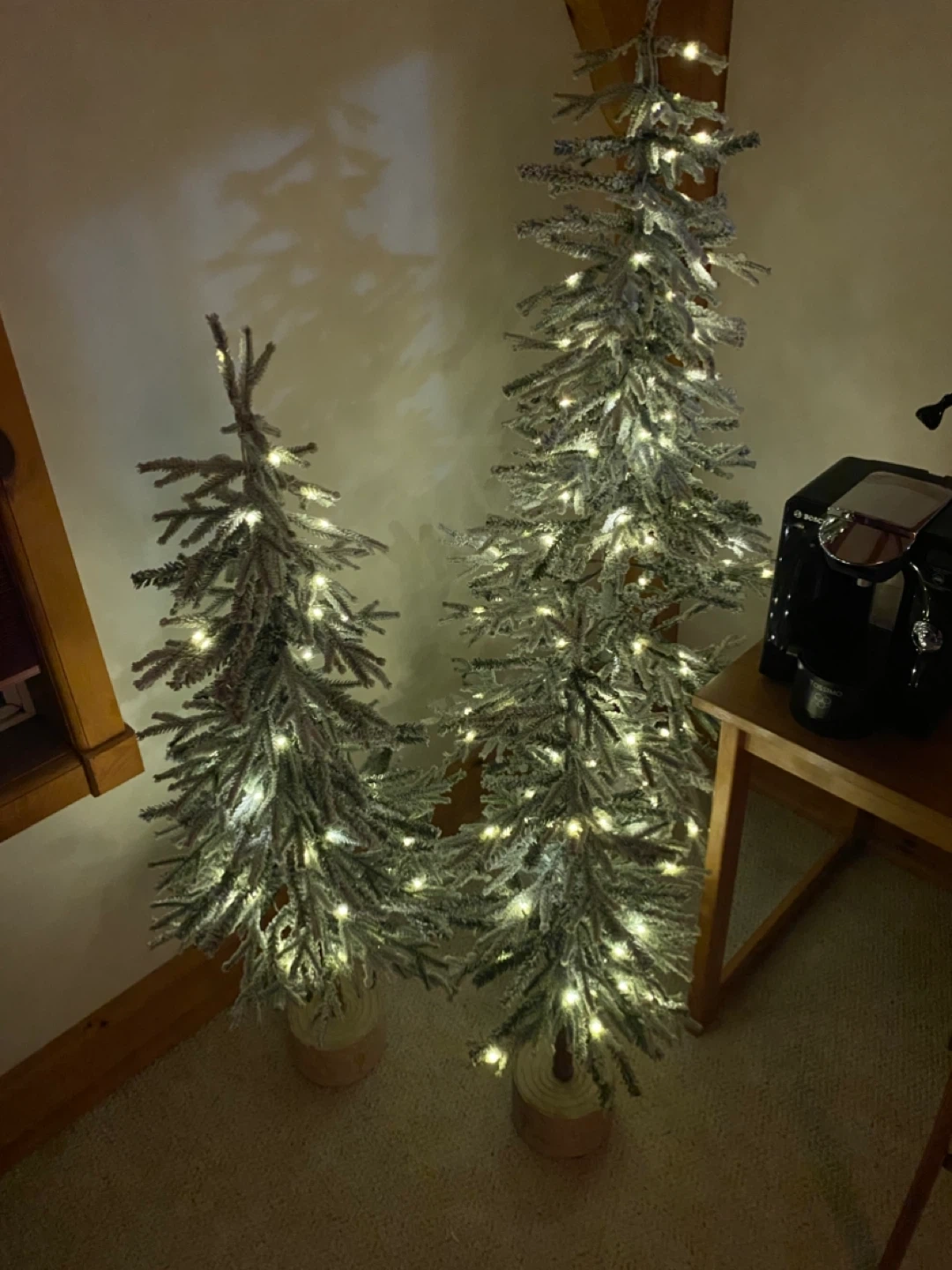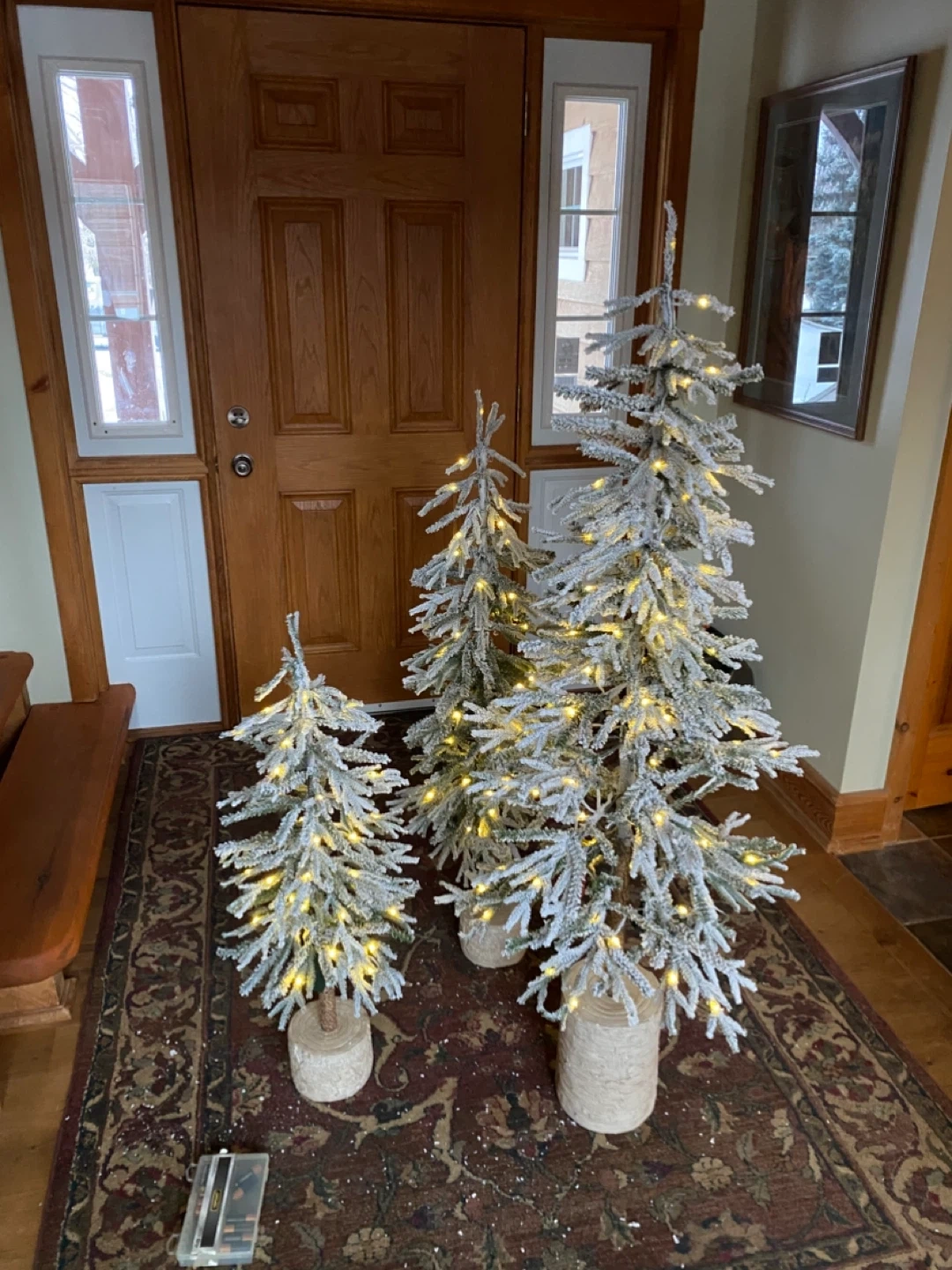 Selling a set of three CANVAS pre-lit flocked downswept potted trees! They're perfect for adding a touch of winter wonderland to your home. Originally bought for $249.99