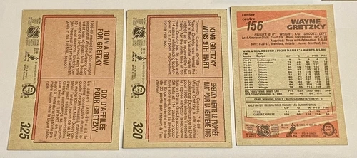 1989-90 OPC Wayne Gretzky OPC Hockey Cards # 156, 320 & 325 Beckett Value $15 US. Feel free to message if you have any questions!