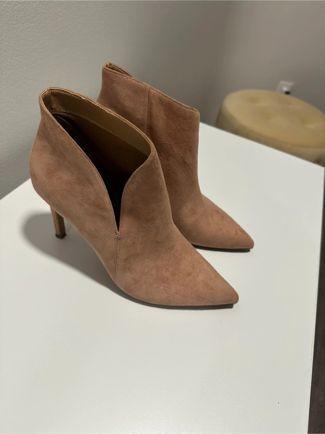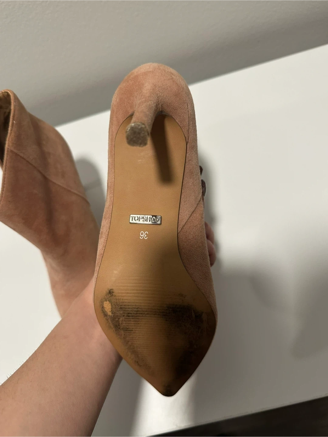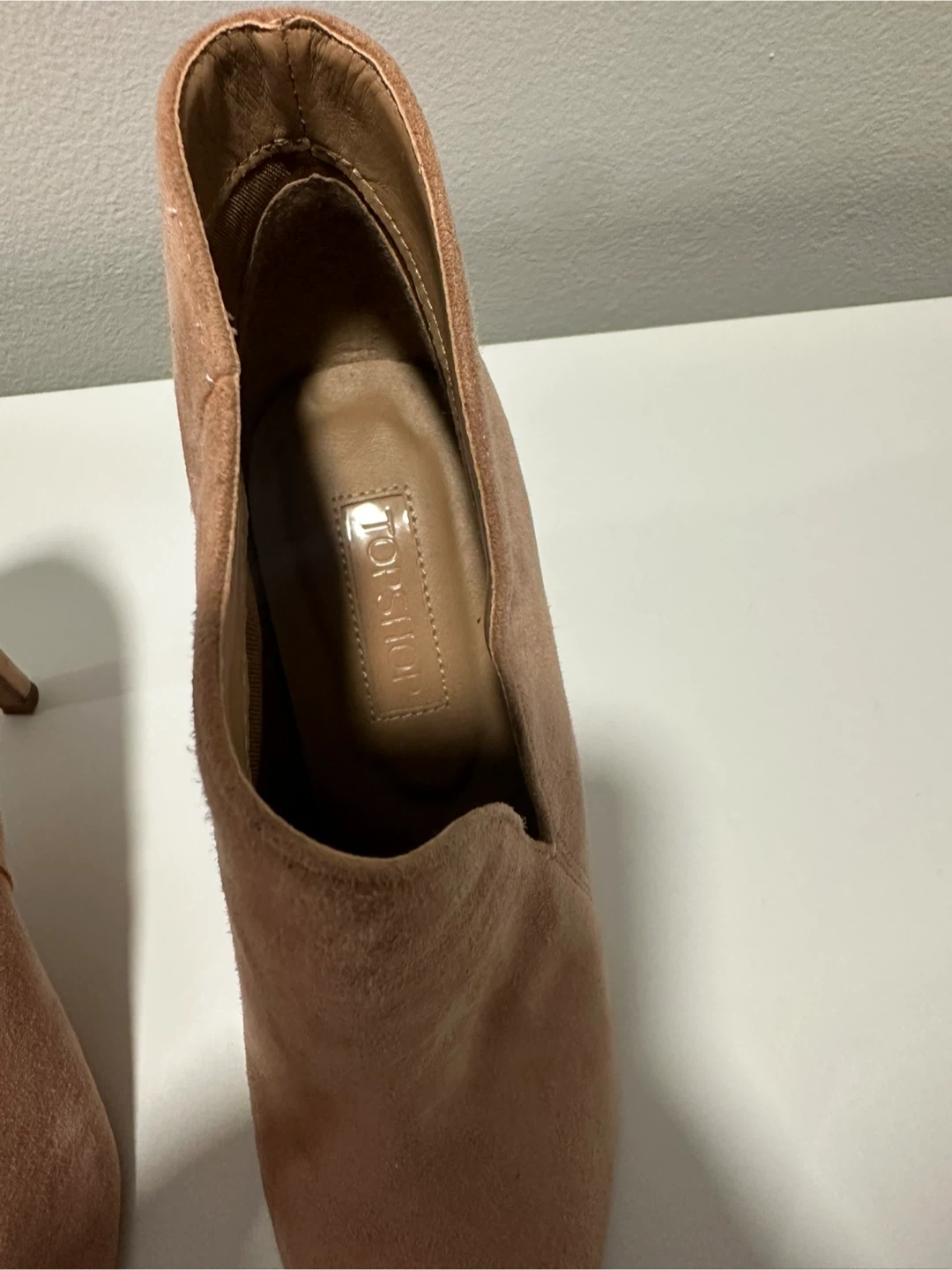 Selling a pair of Topshop ankle boots in a lovely blush colour! They're a European size 36. Please note that there are signs of wear on the soles.