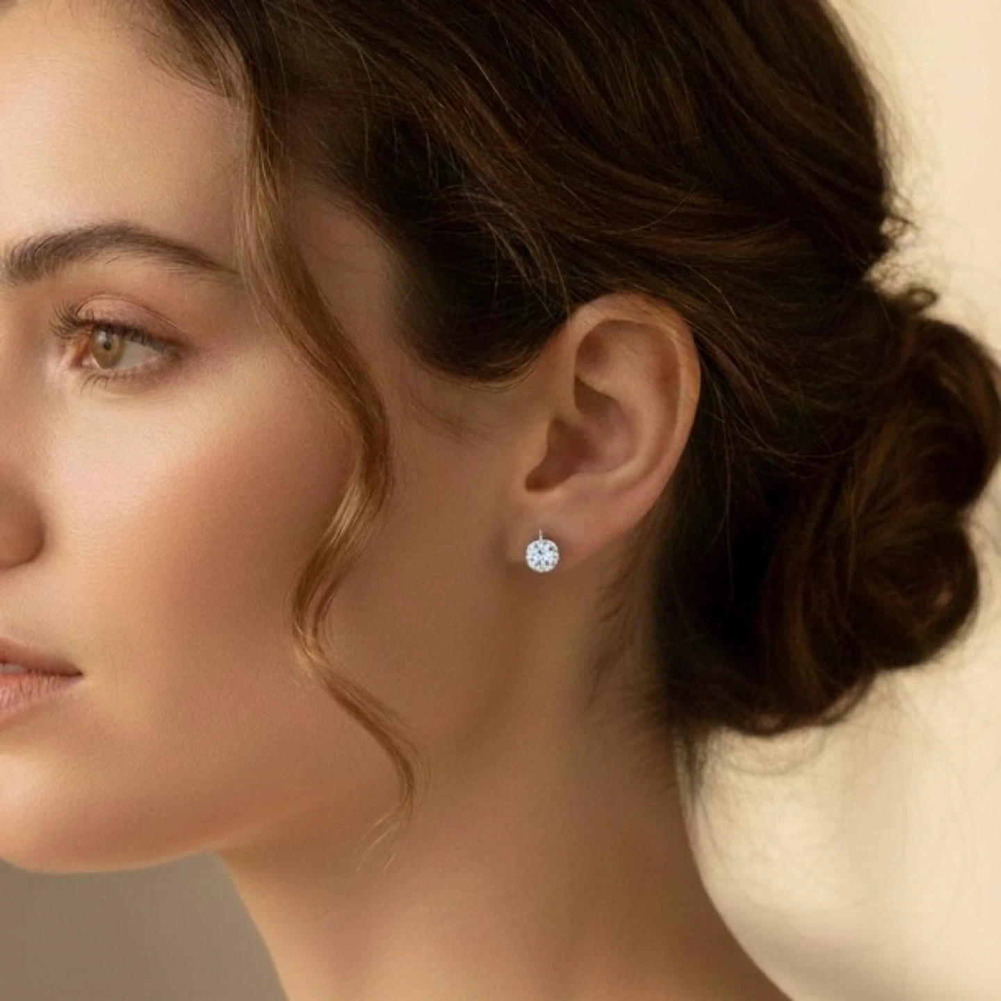 Timeless Silver Bezel Classic Crystal Stud Minimalist Earrings