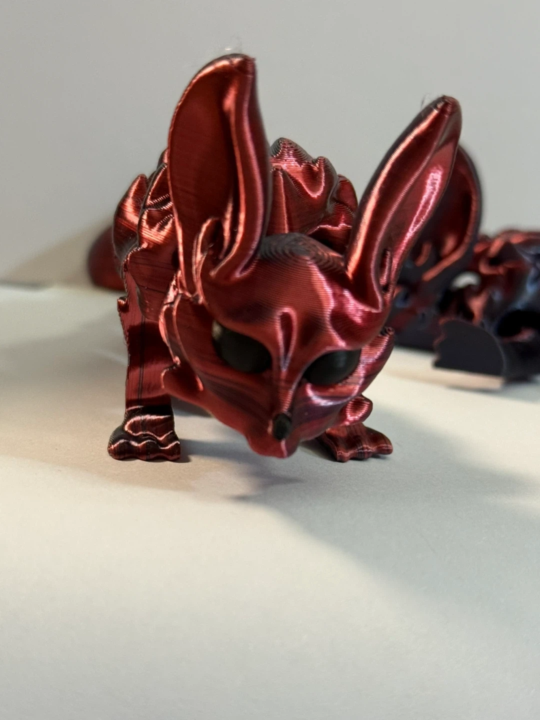 Check out this cool 3D printed fox figurine! It's a unique piece of decor with a cool design and a metallic red finish. Perfect for adding a bit of character to your space