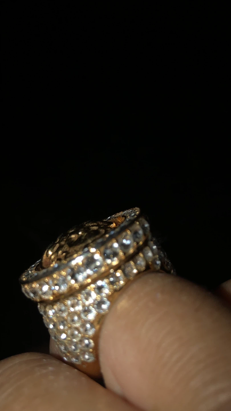 Selling a Versace ring with the Medusa logo. It's gold in colour and has some gemstones around the face. The ring is in good condition!