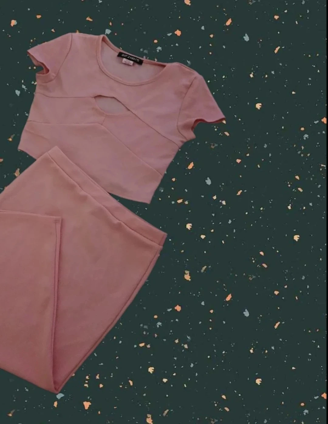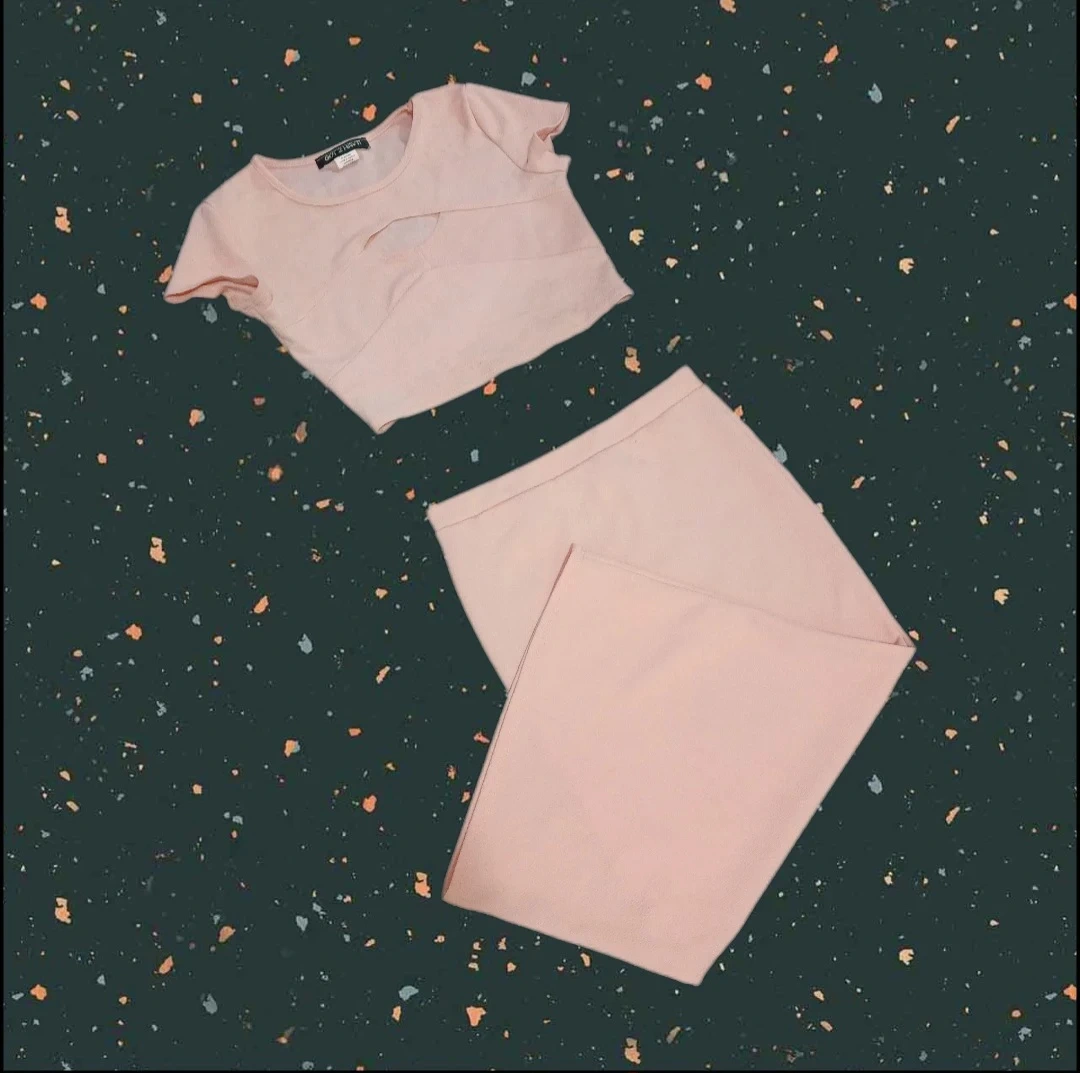 🥰Women's light pink matching set, including a unique crop top and pencil skirt. Perfect for a night out! 💃