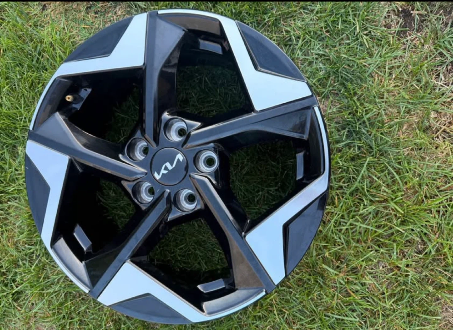Selling a Kia wheel set of 4 rims in black and silver. It's in good condition and ready to be used! The rims were only on the car for 2 months