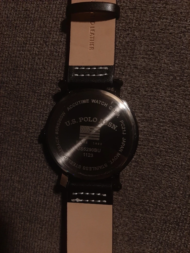 Selling a U.S. Polo Assn. Accutime watch. It has a black band and a stainless steel back. The model number is US5290BU. It's in great shape and ready for a new owner!