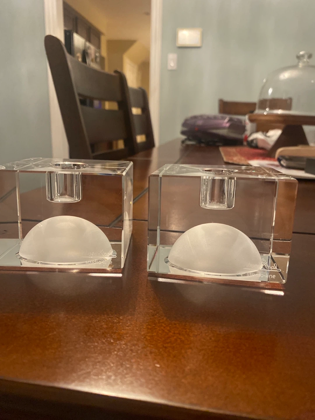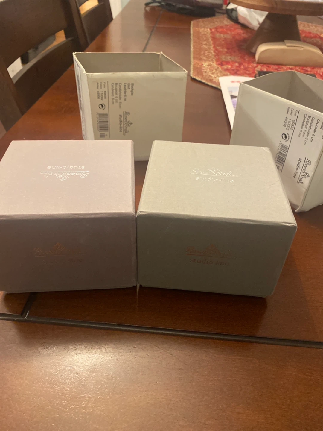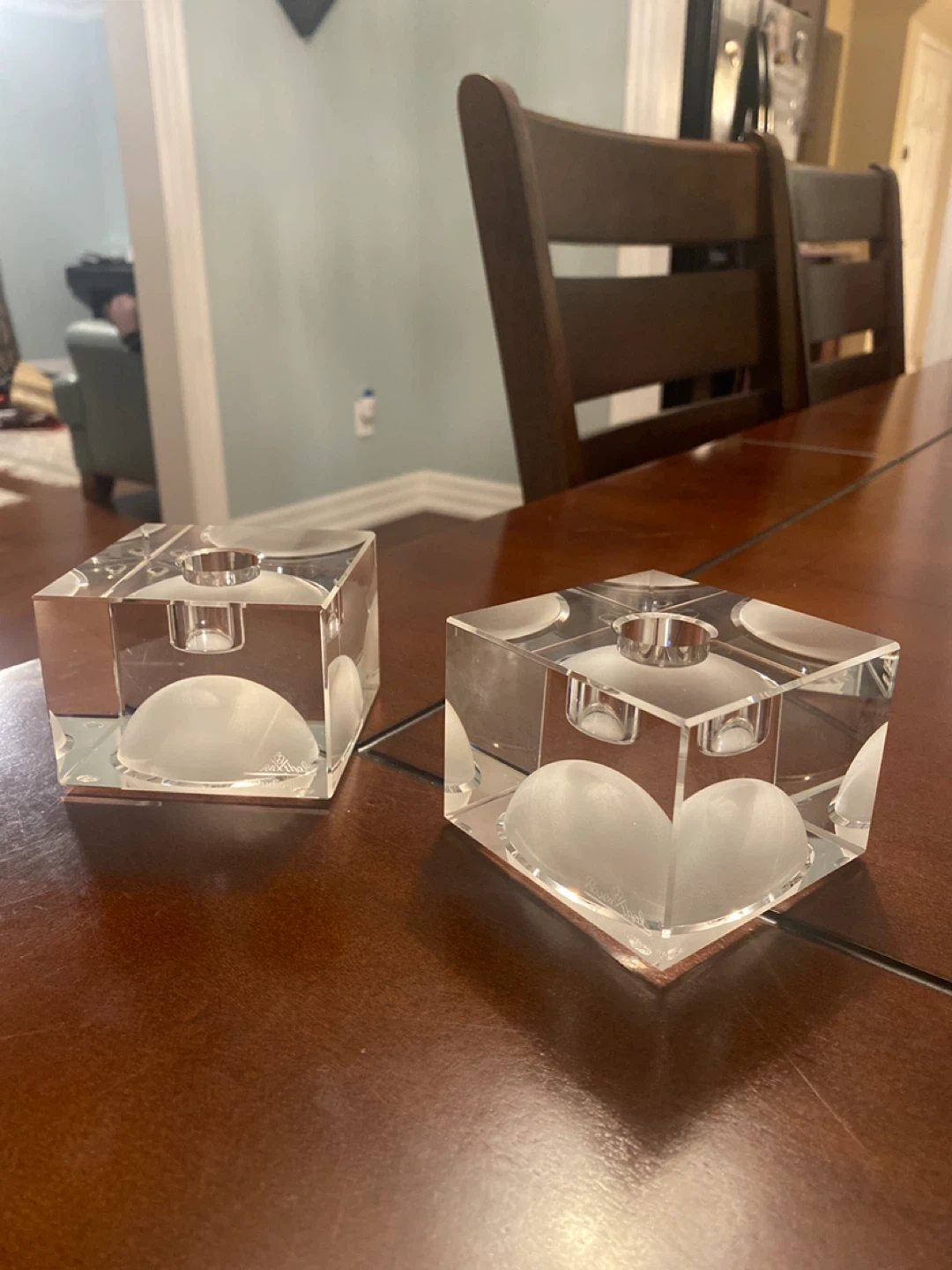 Selling a pair of Rosenthal Studio-Line crystal candlestick holders. They come with their original boxes. These elegant pieces would add a touch of sophistication to any room
