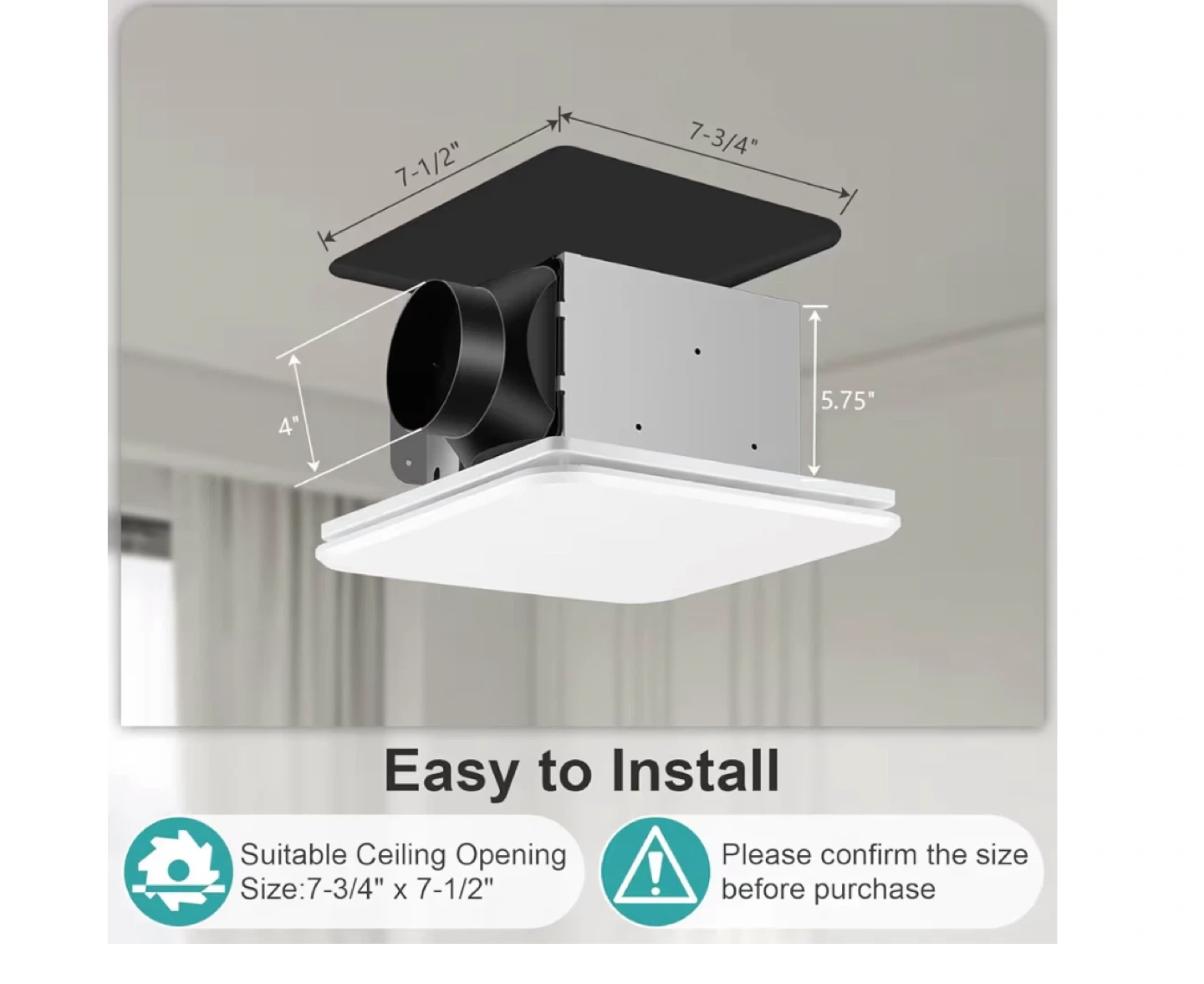 Selling a new exhaust fan, model BPT15B-56H2. It's still in its original packaging and box. The fan is suitable for ceiling openings sized 7-3/4" x 7-1/2". It is designed to be mounted in the ceiling and keeps the air fresh and dry