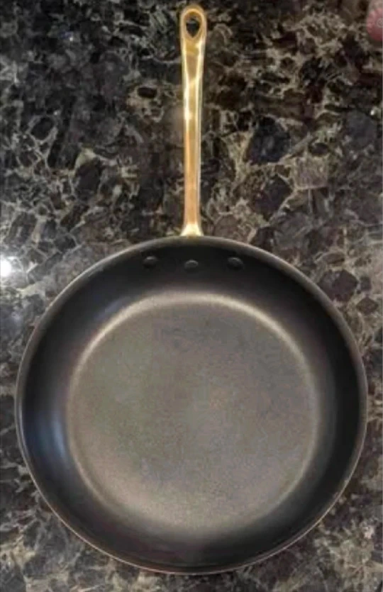 2 Vintage copper skillets with brass handles and non-stick coating. Measurements in pictures. Only used as decorative wall pieces so never cooked with. I added an ad in pics that shows the same vintage small skillet being sold on eBay but in very used condition.