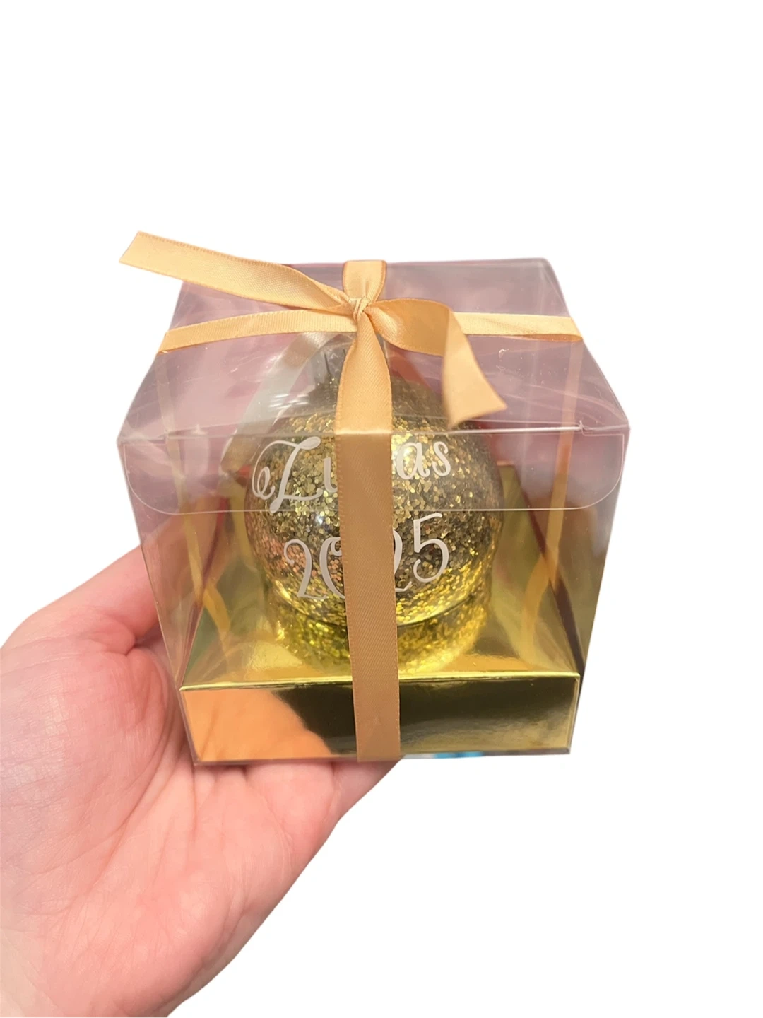 All ornaments can be customized with your choice of wordings & glitter colours and names!