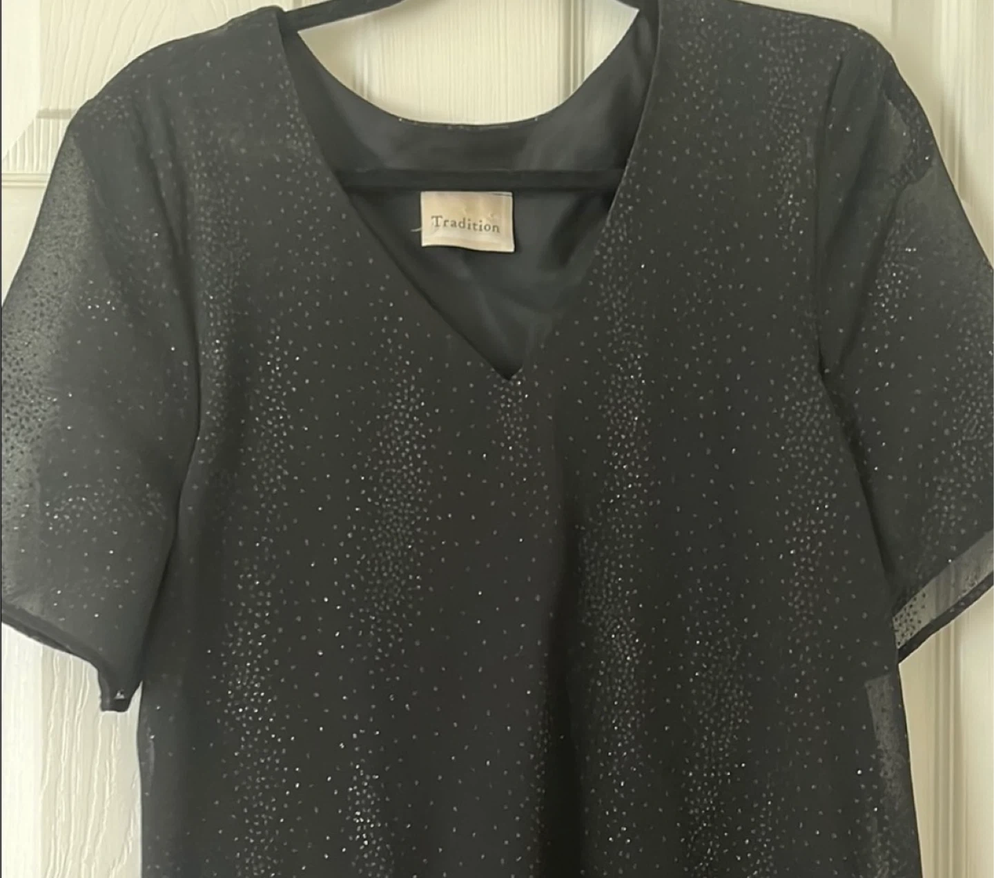 Selling a black dress from Tradition. It's in great condition and has a unique, stylish design. Perfect for any occasion!