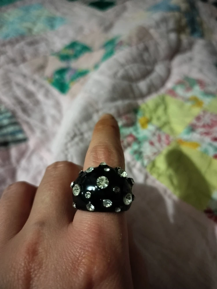 Buy & SellRhinestone Ring - BlackRhinestone Ring - Black$10Selling a ring with rhinestones. It's black and has a unique design. It's in great condition and ready for a new ownerConditionLike newSizeindex finger WHERE TO MEETMount PleasantView MapSELLERverifiedOliviaMount Pleasant29220 reviews0 chats·0 favorites·1 views