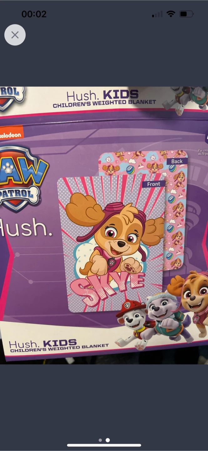 1 / 11 / 1Buy & Sell! New Paw Patrol Hush Kids Weighted Blanket! New Paw Patrol Hush Kids Weighted Blanket$65Selling a Paw Patrol Hush Kids children's weighted blanket! Features Skye from Paw Patrol on the front. Perfect for any Paw Patrol fanConditionNewAgeAll agesWHERE TO MEETCheck LocationView MapSELLERverifiedSunnyGarden District88690 reviews1 chats·0 favorites·11 viewsSEND CHAT TO SELLERHi Sunny! I’m interested in your listing.Hi Sunny! I’m interested in your listing.Get the Karrot app to chatSign In to chat