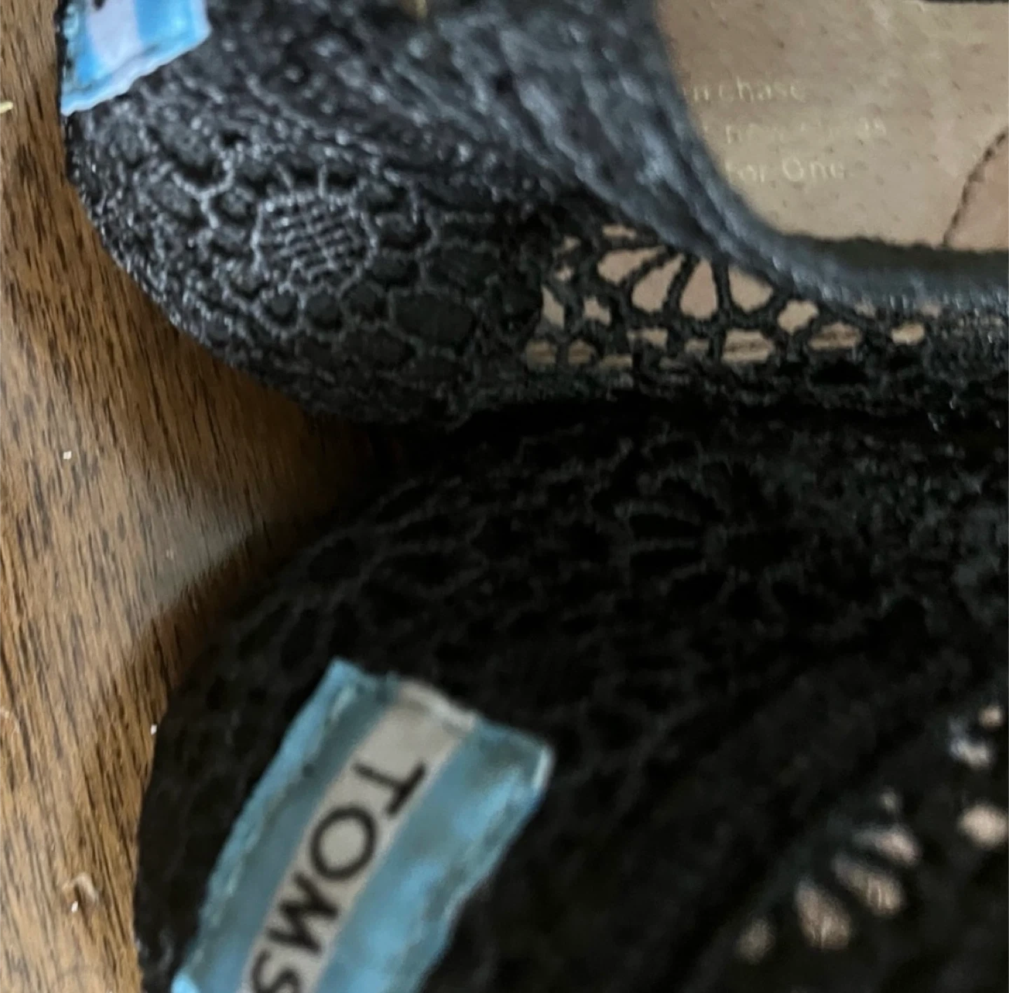 These are a pair of gently used TOMS shoes, perfect for adding a touch of style to your casual outfits! They feature a delicate black lace design and are a women's size 8. They have been well cared for and are ready for a new home!