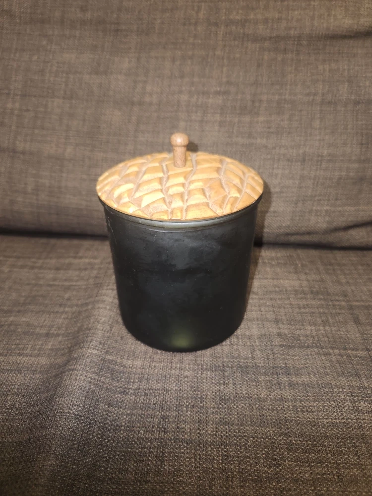 Note: jar used to hold a scented candle, so interior still smells fairly of pine when opened