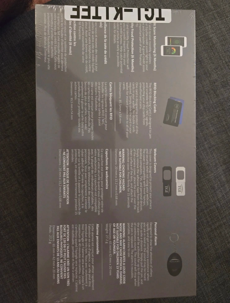 The RFID Blocking Cards are designed to clean and scramble RFID, VISA, Canada and Interac unauthorized scans. The Webcam Covers are designed to protect your privacy and security when using your webcam devices. The Personal Alarm is designed to draw the attention of others when you are in danger and is loud and piercing