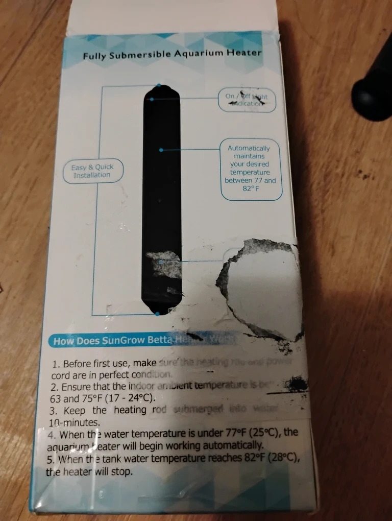 Selling a SunGrow 10 Watts Betta Heater, perfect for 1.5 U.S. Gallon aquariums. It's fully submersible and automatically maintains the aquarium water temperature between 74 to 82°F, which is ideal for Siamese Fighting Fish. It's energy-efficient and thermostatically controlled, offering no thermal shock. The heater is designed for easy and quick installation
