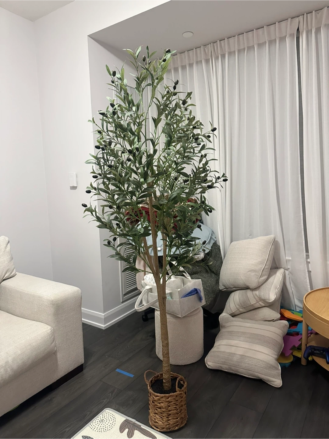 Artificial (faux) olive tree with basket. Tall 6ft. Excellent condition. Barely used. Only had it for 1 year. Moving so looking to get rid of it. Very beautiful and modern, great item to have in your home/ office.