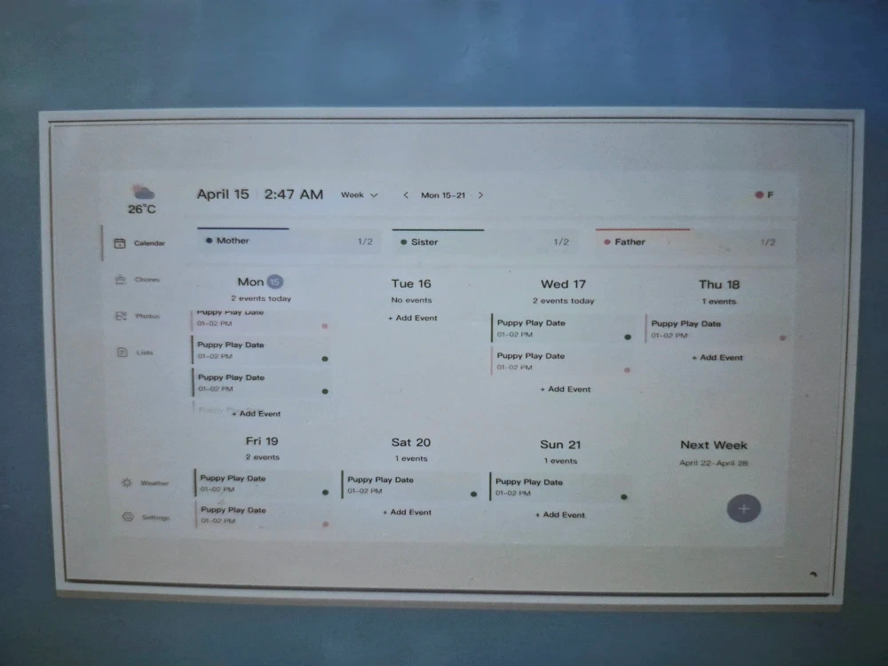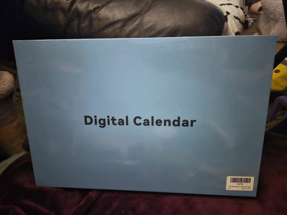 Selling a brand new digital calendar still in its original box! The screen size is 15.6 inches with a resolution of 1920*1080. It supports Wi-Fi 2.4G/5G and comes with dual speakers. Compatible with Google Calendar, iCloud Calendar, Cozi, and Yahoo! Includes the digital calendar, power cable, user manual, screwdriver, L-shaped wrench, stand and short screw, wall mount and long screw, and rubber plug. There is no name brand associated with this calendar.