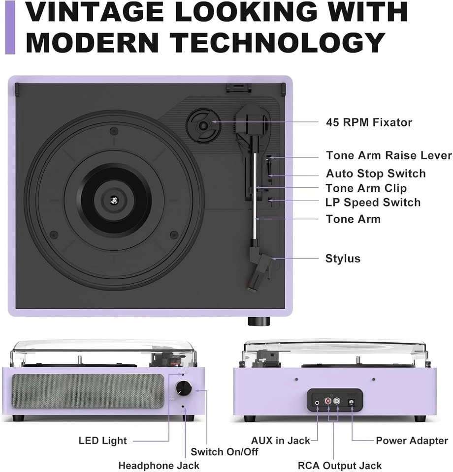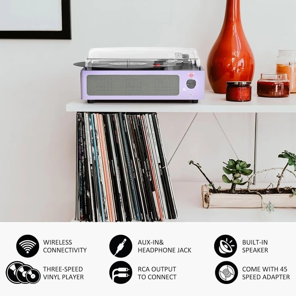 Vinyl Record Players w/ Speakers & Bluetooth - Purple #Cleanout