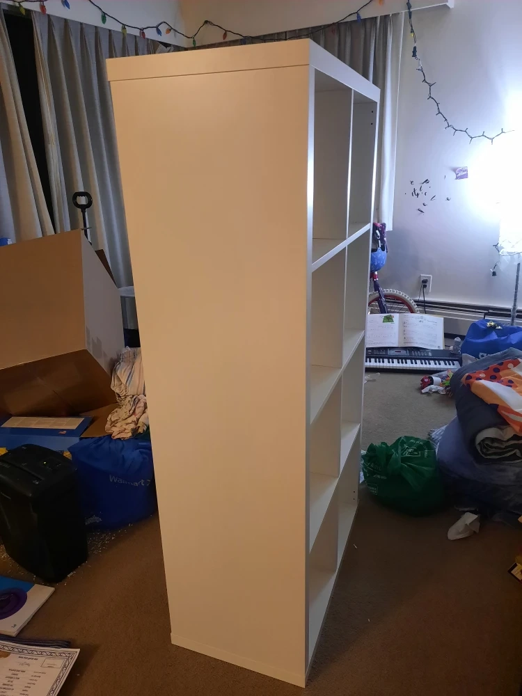 Selling a white IKEA Kallax shelf unit. It has 8 compartments, perfect for storage or display. It's in great shape and ready for a new home!