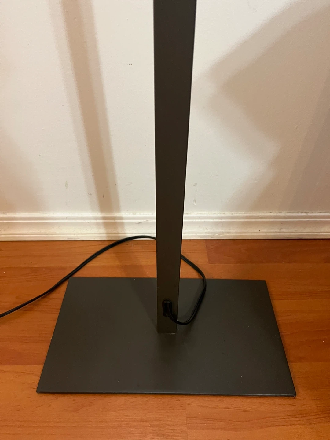 Selling a modern floor lamp with a rectangular shade. It has a sleek design and would look great in any living room or bedroom. It's in good condition and ready to brighten up your space!
